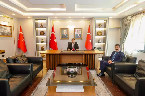 Cumhurbaşkanlığı Kararnamesi’yle Kırşehir Valiliği’ne atanan Murat Sefa Demiryürek, Hatay Valisi Mustafa Masatlı’yı ziyaret etti. Ziyaret sırasında Vali Masatlı, Kırşehir Valisi Demiryürek’e, yaptığı hizmetlerinden ve içerisinde bulunulan zorlu süreçte özverili çalışmalarından dolayı teşekkür ederek yeni görevinde başarılar diledi.(