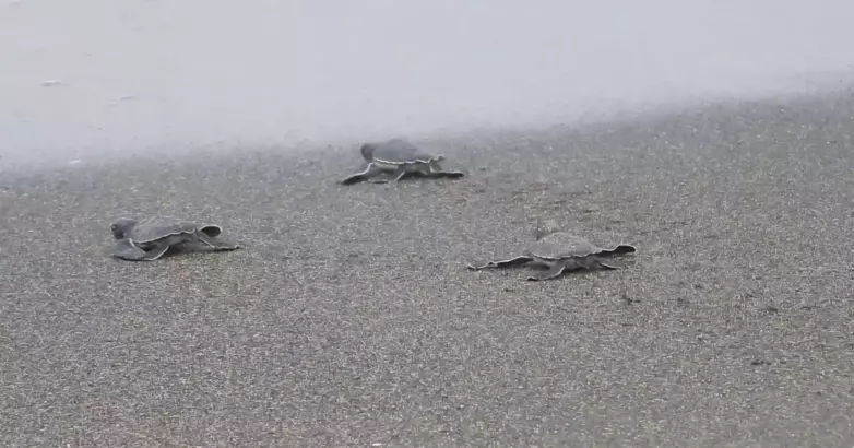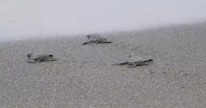 Samandağ ilçesinde yuvalarından çıkan yeşil deniz kaplumbağası yavruları, denizle buluşmaya başladı.