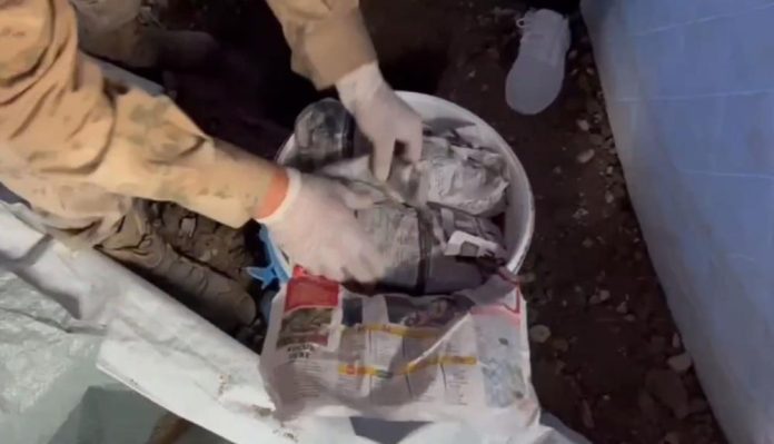 HATAY (İHA) – Hatay‘da içerisinde 12 kilo 500 gram uyuşturucu bulunan kovayı, deprem çadırının içerisinde toprağa gömen M.D. jandarma ekiplerinden kaçamadı. Yaptığı uyanıkla pes dedirten zehir taciri mahkemece tutuklandı.