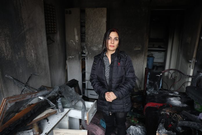 HATAY (İHA) – Hatay’da depremde evi yıkılan Özlem Berrak ve ailesinin yaşadıkları yeni yuvaları yangında zarar gördü. Depremin ardından ikinci kez felaketi yaşayan Berrak, 1 yıldır yaşadığı yuvasının yeniden eski haline dönmesini istiyor.