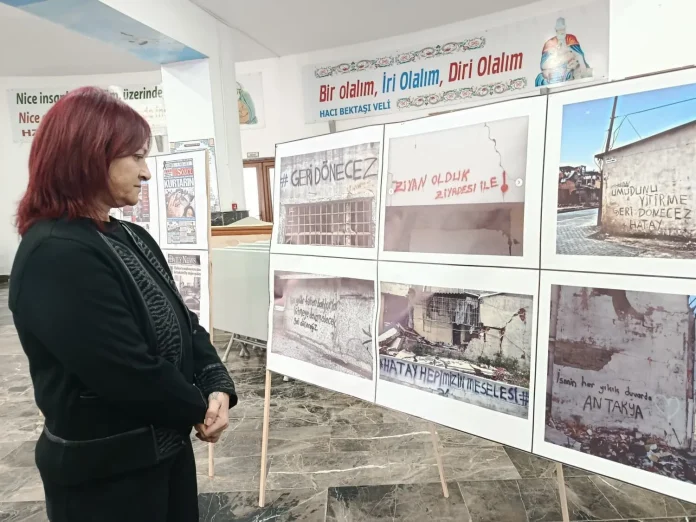 Sergi, Hacıbektaş-ı Veli Anadolu Kültür Vakfı İskenderun Şubesi Cemevi Salonu’nda düzenlenirken, açılış törenine depremde yakınlarını kaybeden aileler ile İHD üyeleri katıldı.