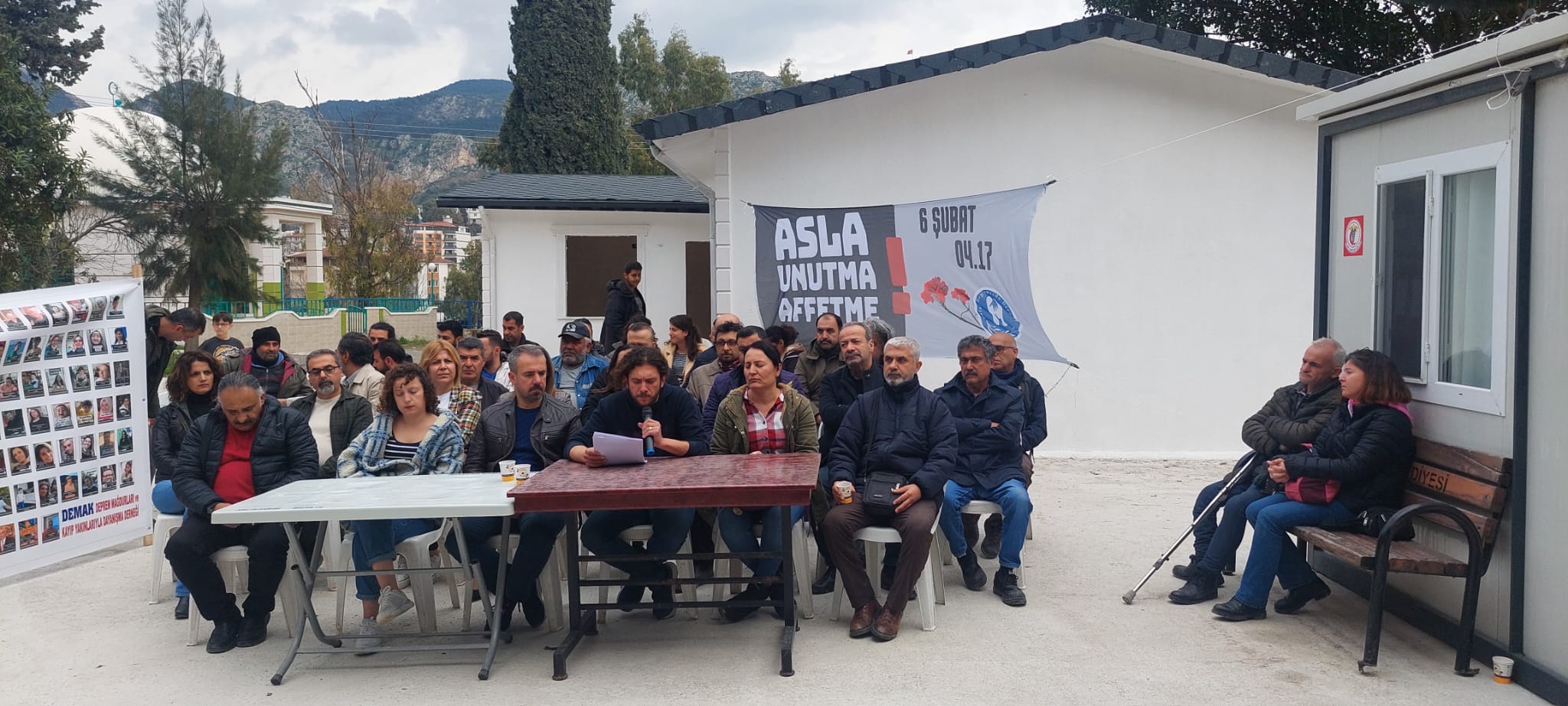 Hatay Depremzede Derneği olarak, bu dayanışma ve hak mücadelesini Hatay’da sürdürmeye devam ediyoruz. Depremin yaralarını sarması gereken siyasal iktidar ve devlet kurumları o günden bugüne sorunları çözecek köklü adımlar atmadığı için yaşanan bir yıllık süreçte barınma hakkından, eğitim hakkına, sağlık hakkından çevre ve mülkiyet hakkına, ekonomik, sosyal, siyasal ve demografik sorun ve hak ihlallerini Hatay halkı yaşamaya devam ediyor.