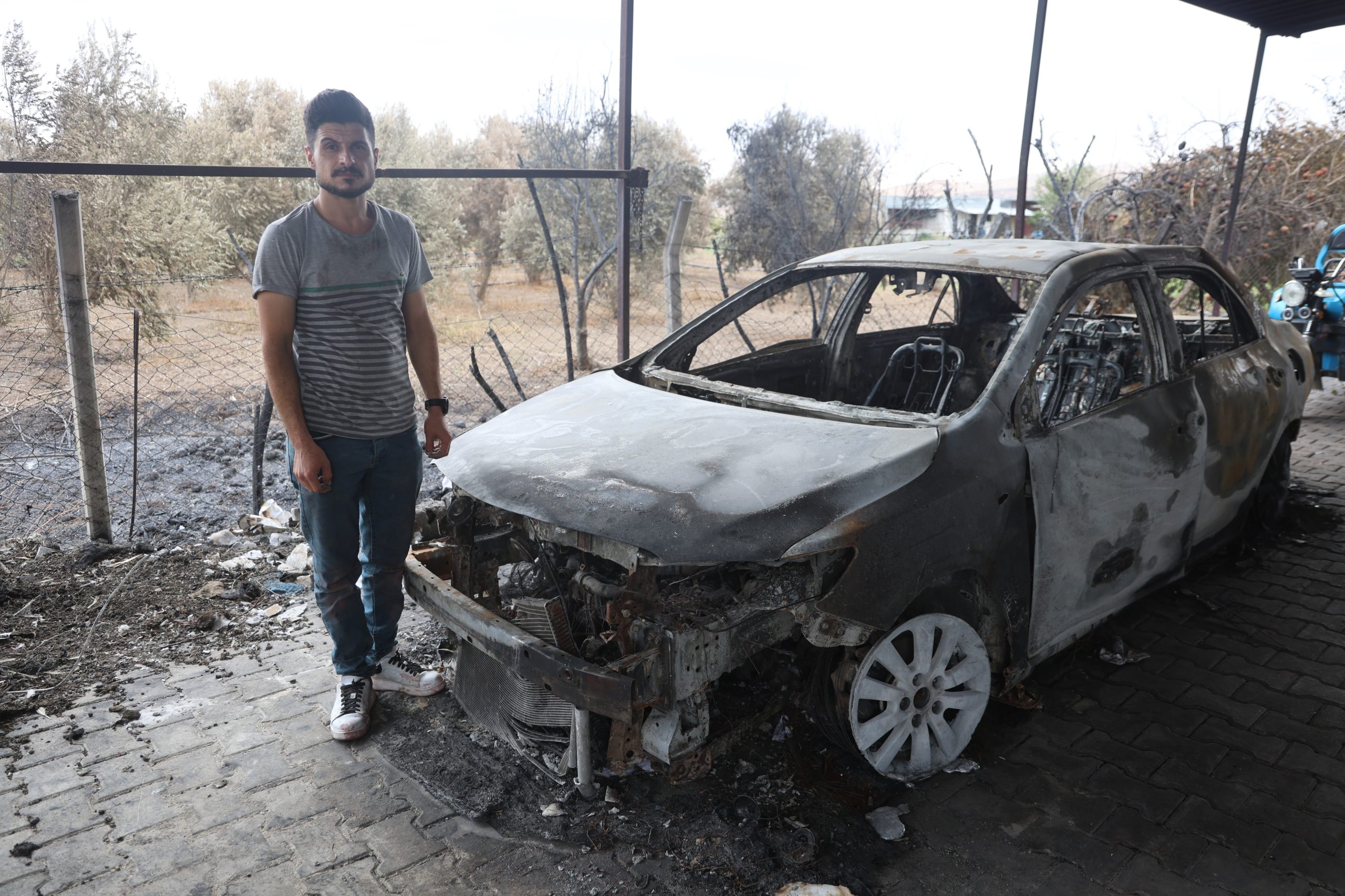 HATAY (İHA) Reyhanlı ilçesinde otluk alanda çıkıp samanlığa sıçrayan yangında, depremzede ailenin otomobilleri ve tarım aletleri kullanılamaz hale geldi. Depremde evleri yıkılıp konteyner da yaşamlarını sürdüren aile, yangından dolayı bir kez daha felaketi yaşadıklarını söylediler.