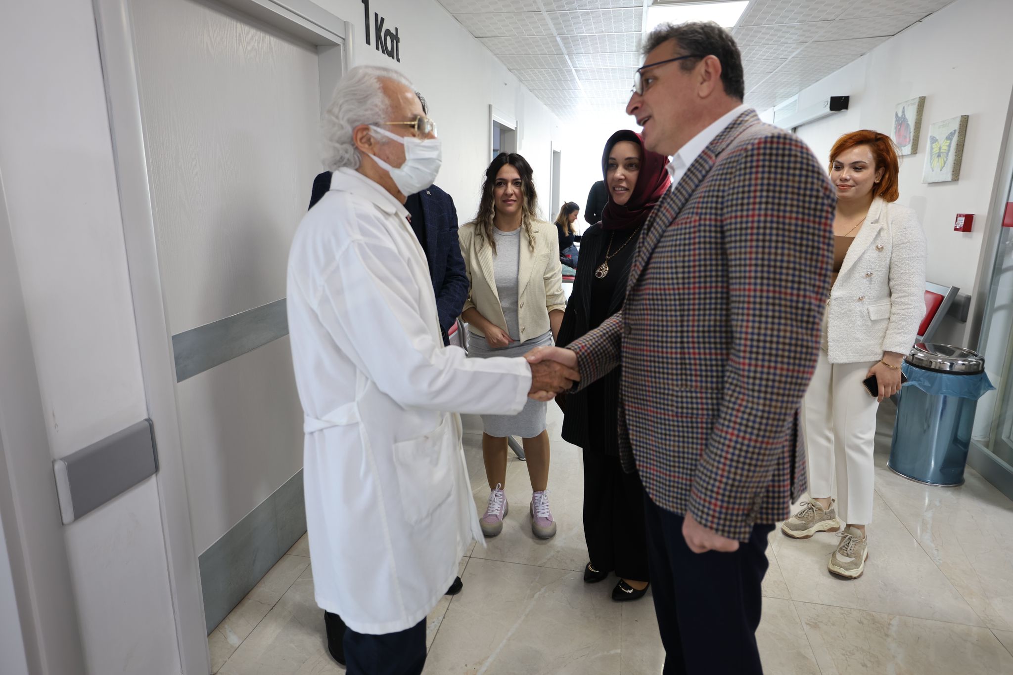Dönmez’in bir sonraki durağı Palmiye Hastanesi oldu. Burada Palmiye Hastanesi Başhekimi Op. Dr. Yusuf Diker’e konuk olan Başkan Adayı Mehmet Dönmez, insanlarımıza şifa dağıtan doktorlarımızın çok önemli mesleği icra ettiklerini vurguladı.