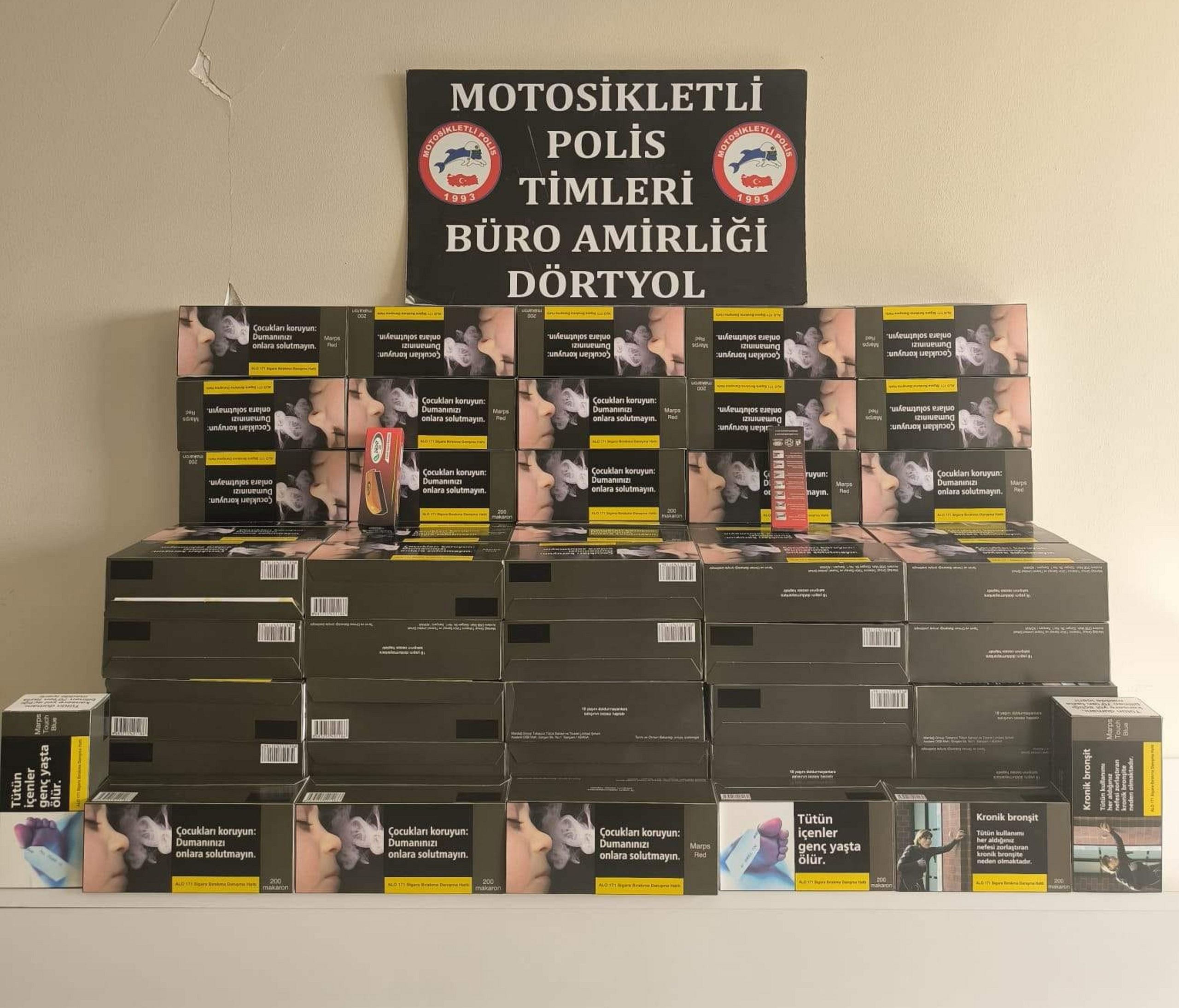 Hatay Emniyet Müdürlüğü görevlilerince kaçakçılık olaylarına yönelik yapılan çalışmada; Dörtyol ilçesinde yapılan uygulamada 100 karton gümrük kaçağı boş makaron (filtreli sigara kağıdı) ele geçirildi.