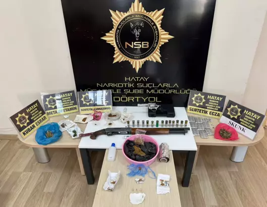 Dörtyol Cumhuriyet Başsavcılığı koordinesinde, Dörtyol İlçe Emniyet Müdürlüğü ekiplerince uyuşturucuyla mücadele kapsamında sokak satıcılarına yönelik operasyon yapıldı. 9 adrese eş zamanlı yapılan baskınlarda 8 şüpheli gözaltına alınırken aramalarda 146 gram sentetik uyuşturucu madde, 83 adet uyuşturucu hap, 1 kuru sıkı tabanca ile 1 ruhsatsız av tüfeği ele geçirildi. 1 kişinin arandığı olayla ilgili gözaltına alınan şüphelilerin sorgusu sürüyor. (
