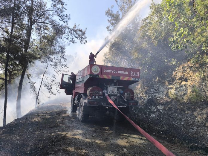 Hatay’ın Dörtyol ilçesi Kırmızıburun ile Çökek Yaylası arasında çıkan orman yangını, havadan ve karadan yapılan müdahaleyle kontrol altına alındı. Bölgede soğutma çalışmaları sürüyor.