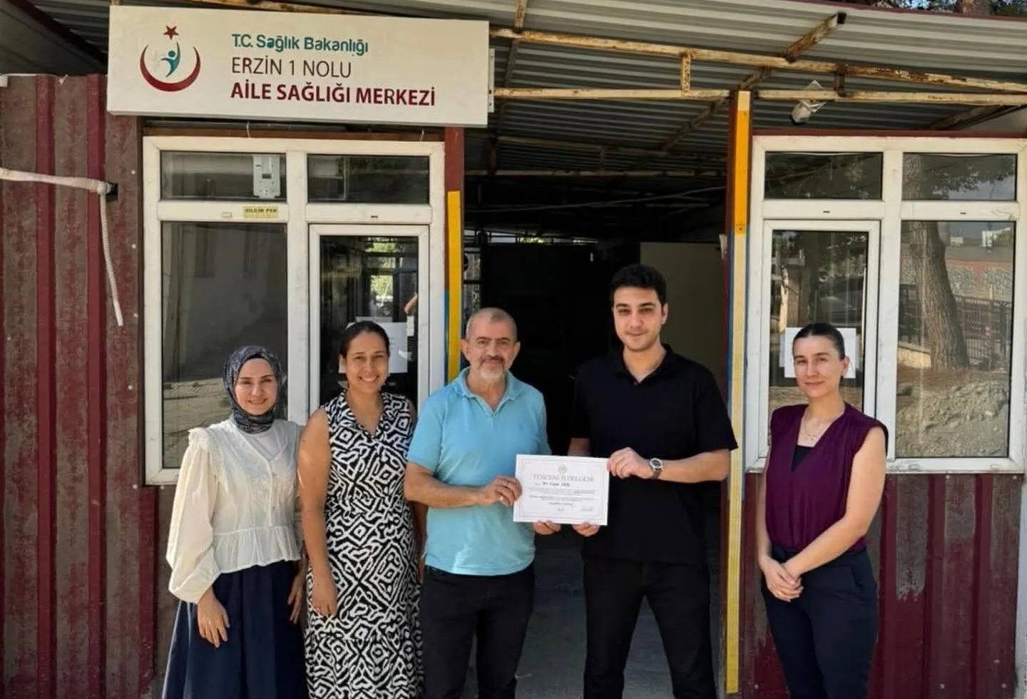 Hatay’ın Erzin ilçesinde 1 Nolu Aile Sağlığı Merkezi’nde görev yapan Dr. Yaşar Akıl’a başarılı KETEM çalışmaları dolayısıyla Sağlık Müdürlüğü tarafından teşekkür belgesi verildi.