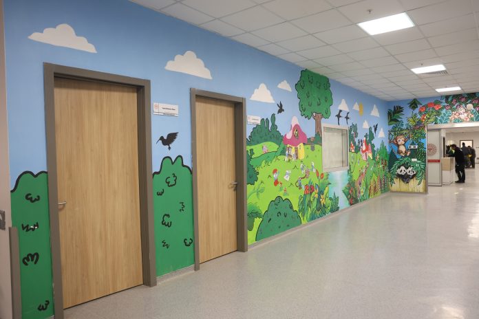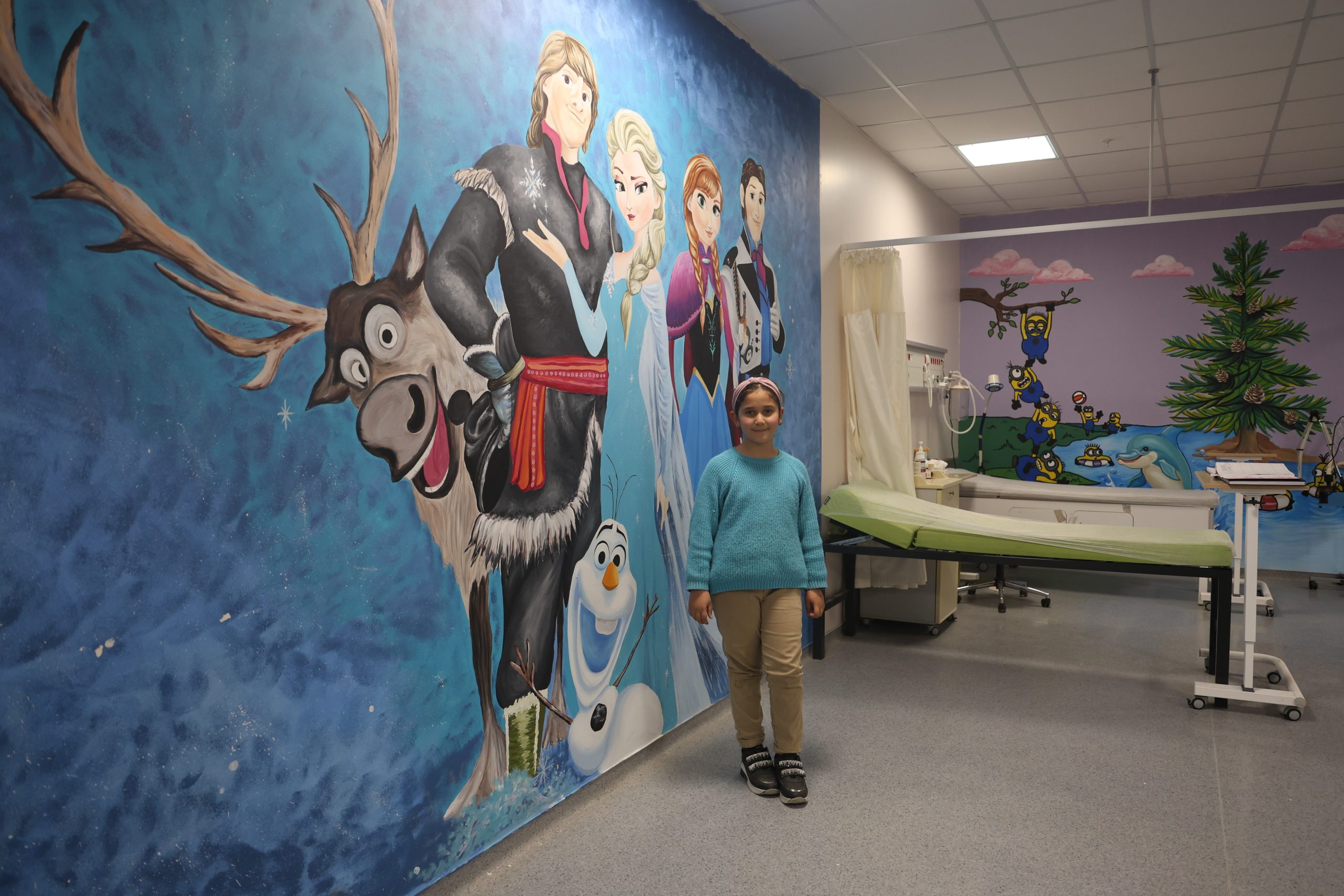Hatay’da asrın felaketinden sonra inşa edilen Defne Devlet Hastane’nin çocuk servis bölümlerin duvarlarına ‘Çocuk Dost Köy’ projesiyle çizgi film karakterleri çizildi.