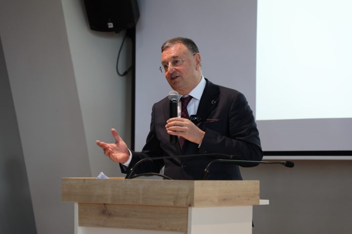 Çelik, Hatay’ depremden bu yana terk etmeyerek sahalarda olan ve proje için çok önemli çalışmalar gerçekleştiren HBB Başkanı Doç. Dr. Lütfü Savaş’a plaket verdi.
