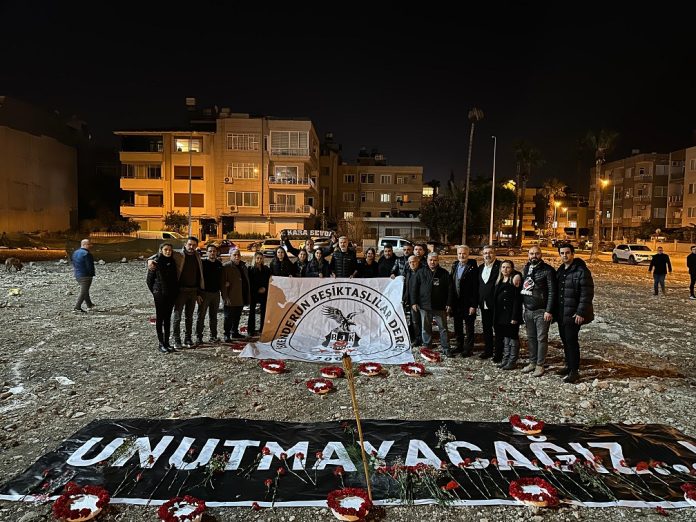 İskenderun Beşiktaşlılar Derneği tarafından 120 kişinin hayatını kaybettiği Eda Apartmanı’nın bulunduğu alanda anma etkinliği düzenlendi.