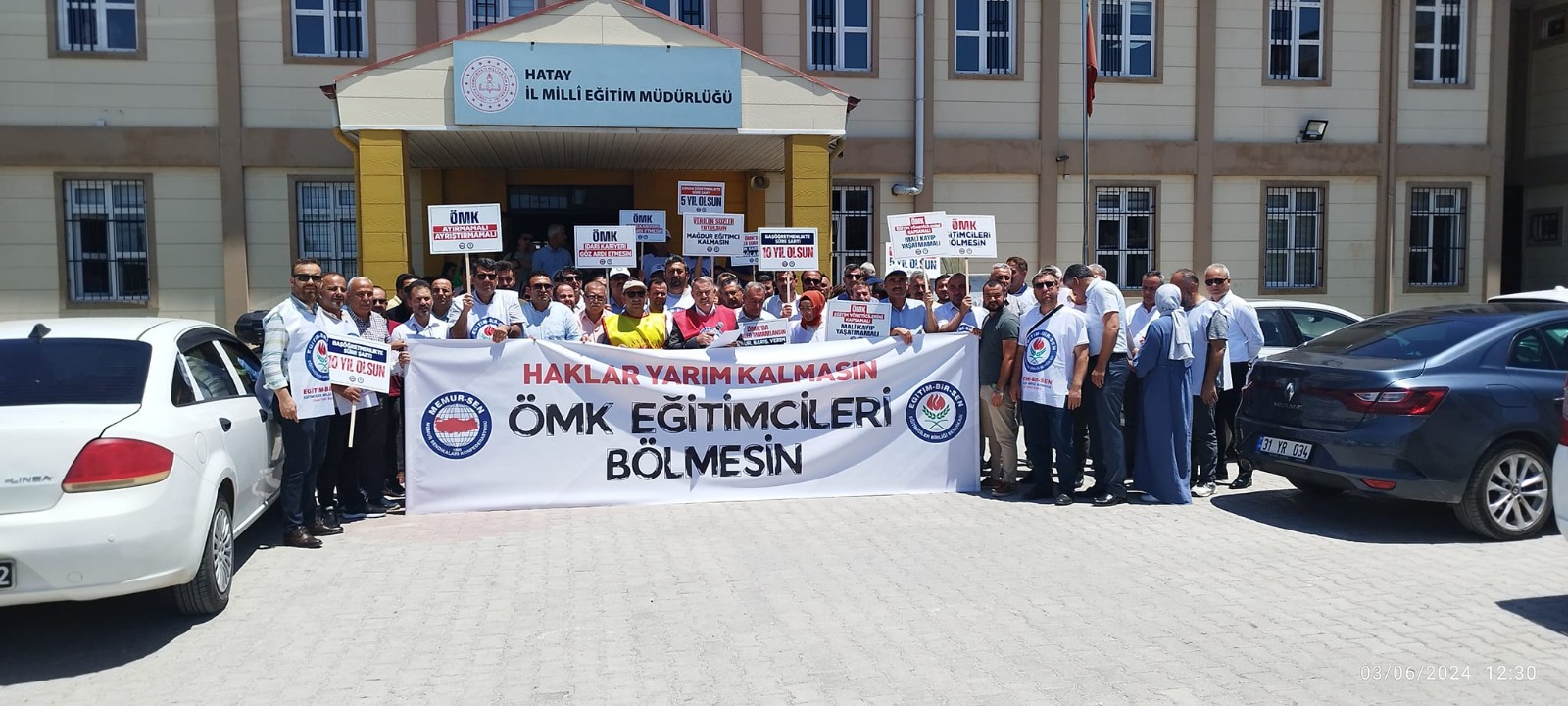 Eğitim-Bir-Sen Hatay şubesinden bir grup öğretmen, Pazartesi günü İl Milli Eğitim Müdürlüğü binası önünde bir basın açıklaması yaparak Öğretmenlik Meslek Kanunu’nun beklentilerini karşılamasını talep etti.