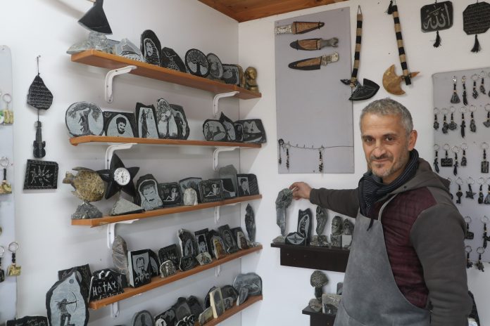 Hatay’da hobi olarak başladığı serpantin taşı işleme sanatını ekmek kapısı yapan Ali Güler, 25 yıldır ekmeğini taştan çıkarıyor.
