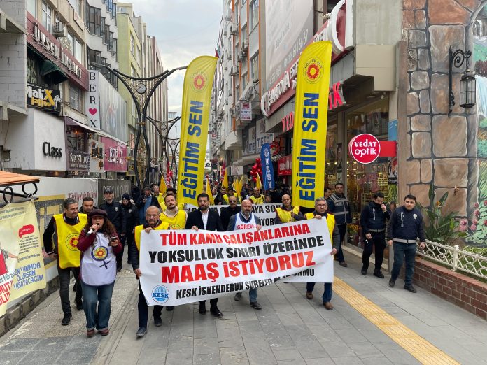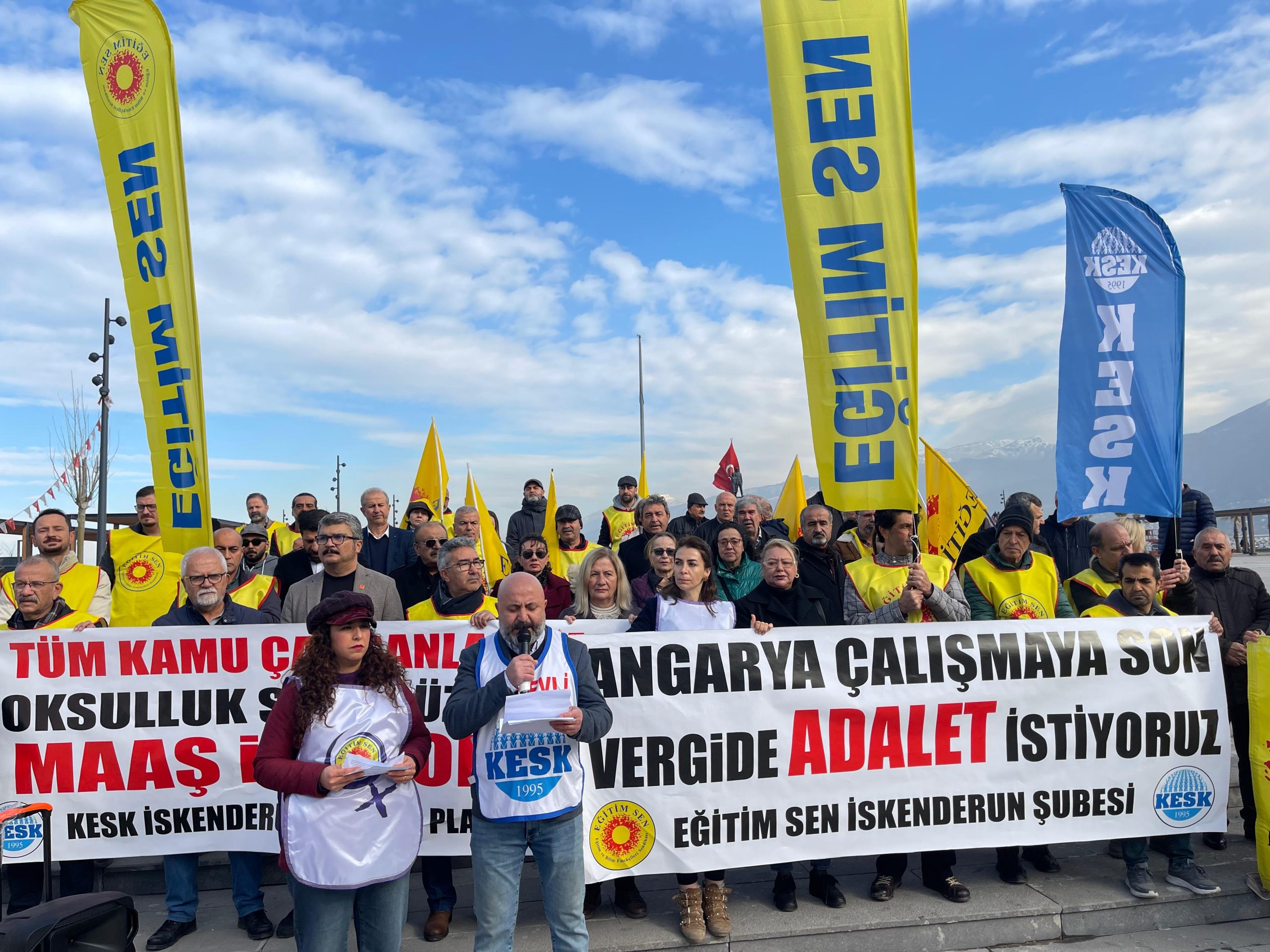 KESK İskenderun Şubeler platformuna mensup sendikalar “geçinemiyoruz Emeğimizin karşılığını istiyoruz “ şiarıyla bir günlük iş bırakma eylemi yaptılar.