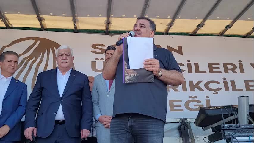 “Depolarımızı basıyorsunuz bizi terörist ilan ediyorsunuz, biz üreticiyiz. Bizim hiçbir siyasi parti ile bağlantımız yoktur. Biz bütün partilerden bağımsız üretici çiftçilerden oluşan bir derneğiz. Biz kafamızı kuma gömüyoruz, gece gündüz demeden sabahın şafağında kalkıyoruz, üretiyoruz ancak nedense bizim ürettiğimiz ürünler hiçbir yerde pazar bulmuyor. Dünya pazarında biz rekabet edemiyoruz. Bizim girdilerimizin aşırı yüksek olmasından kaynaklı masraflarımızın aşırı yüksek olmasından dolayı biz dünya ile rekabet edemiyoruz. Bizler inatla ürettik ama bugün artık son noktaya, üretemez duruma geldik. Çiftçi çalışıyor üretiyor ufacık bir afet olduğunda çiftçinin borcu. Ne borcu, biz çalışıyoruz üreteriz. Üreticimiz borçlu, işçimiz borçlu, tüccarımız borçlu. Biz niye borçluyuz? Çalışıp, üretiyoruz. Sıkıntı nerede.”