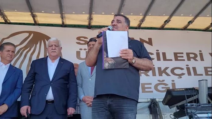 “Bir pandemi yaşadık denildi ki dağı taşı ekin, biz arkanızdayız. Kaç yıldır soğanlarımız tarlada kaldı. Bunun sorumlusu kim? Bugün bir dernek kuran kardeşlerimiz her türlü siyasetin üstünde üreticiler olarak bir araya gelmiştir. Bu aciz kardeşiniz 5 yıl parlamentoda sizin adınıza vekillerinizi yapmıştır. O zamanlarda soğan tarlasına gittim pamuk tarlasına da gittim patates tarlasına da gittim. Şu Yanı başımızda bitmeyen bitirmeyen barajın setinin üstünde Türkiye’ye seslendim yeter artık bu insanlar. Bu kadar ağır faturalarla bu çiftçiler nasıl çiftçiliğe devam edecek. Bunu sorumlusu mevcut iktidar. Bugün bunların sorumlusuna sesleniyoruz. Barajımızı bitirin, çiftçilerin mağduriyetini bitirin.”