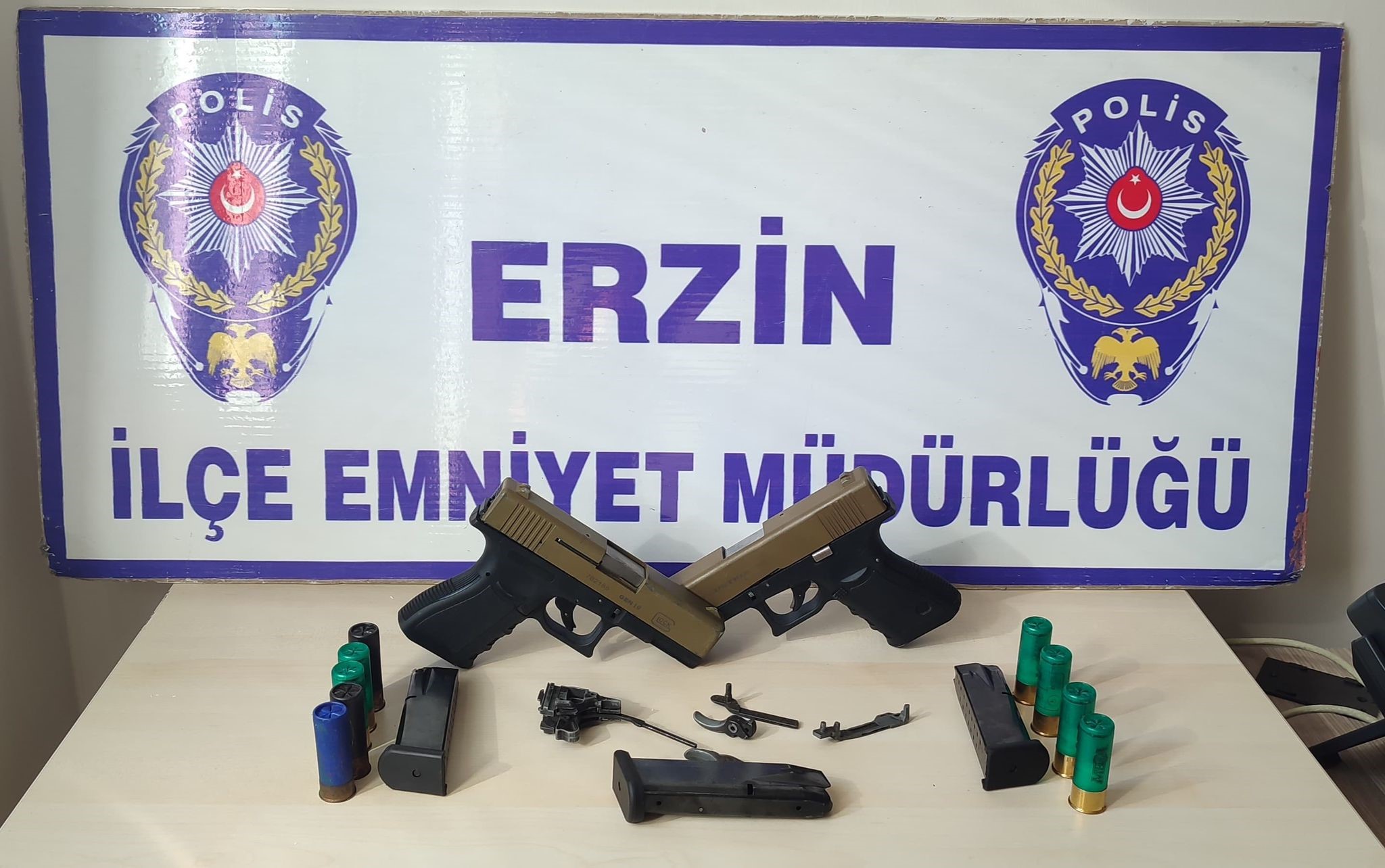 Olayla ilgili olarak Erzin Cumhuriyet Başsavcılığınca yürütülen soruşturma kapsamında C.S. ve M.Ü. isimli şahısların belirlenen ikametlerinde yapılan aramalarda; 2 adet aynı marka ve seri nolu tabanca, tabancaya ait 3 adet şarjör, 5 adet tabanca parçası, 9 adet 12 calibrelik av tüfeği fişeği ile ele geçirildi.