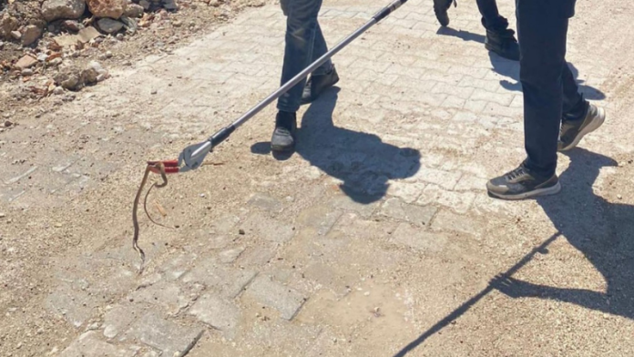 Olay itfaiye teşkilatına bildirildi ve gelen kurtarma ekipleri özel aparatla yılanı yakaladı. Özel aparatla yakalanan yılan itfaiye personeli için adeta oyuncak olurken ,dışarıya çıkarılan yılan daha sonra doğal yaşam alanına bırakıldı