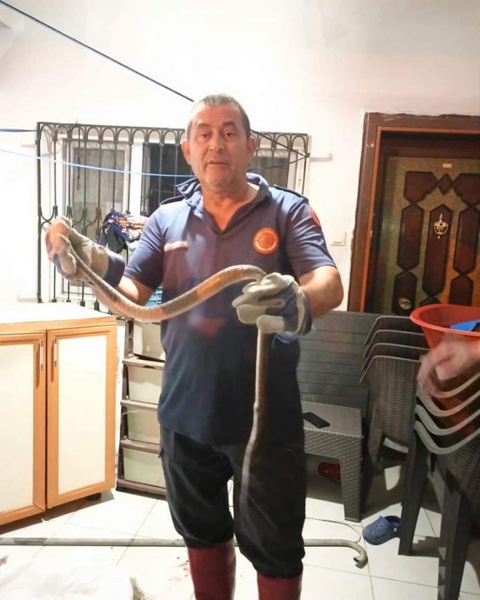 Payas ilçesi Karacami Mahallesinde Bir Eve Giren Yılanı Hatay Büyükşehir Belediyesi İtfaiye Ekipleri Yakaladı Yılan İtfaiye Ekipleri Tarafından Doğaya Salındı