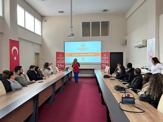 Defne ilçesinde Aile ve Sosyal Hizmetler Bakanlığı’nın evlendirme kredisine başvuruları kabul edilen gençlere evlilik öncesi eğitimi verildi.