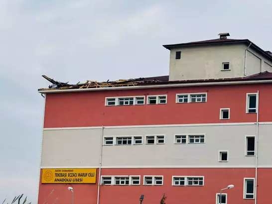 İlçede gece saatlerinde etkili olan fırtına, hayatı olumsuz etkiledi. Tekebaşı Mahallesi’ndeki bir lisenin çatısı zarar gördü. Sabaha karşı fırtına etkisini yitirdi. Ekipler, ortaya saçılan parçaların temizlenmesi ve çatının onarılması için çalışma başlattı. (