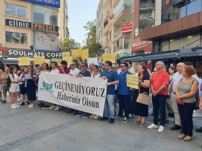 Türkiye Gazeteciler Sendikası (TGS) İzmir Şubesi, gazetecilerin yaşadığı ekonomik sıkıntılara dikkat çekmek için yürüyüş düzenledi. Alsancak Kıbrıs Şehitleri Caddesi’nde bir araya gelen gazeteciler, “Geçinemiyoruz, haberiniz olsun” yazılı pankart ile Türkan Saylan Kültür Merkezi önüne doğru yürüyüşe geçti. Çeşitli siyasi parti ve sivil toplum kuruluşu temsilcilerinin de destek verdiği yürüyüşte, “Krizin bedelini patronlar ödesin”, “Maaşlar dipte enflasyon zirvede” ve “Dolu haber boş cüzdanla yapılmaz” yazılı dövizler taşındı.