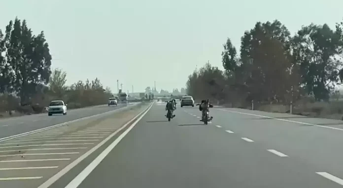 (Hatay), (DHA)- HATAY’ın Kırıkhan ilçesinde 2 gencin yüzüstü yatarak motosiklet kullandığı anlar, cep telefonuyla görüntülendi.