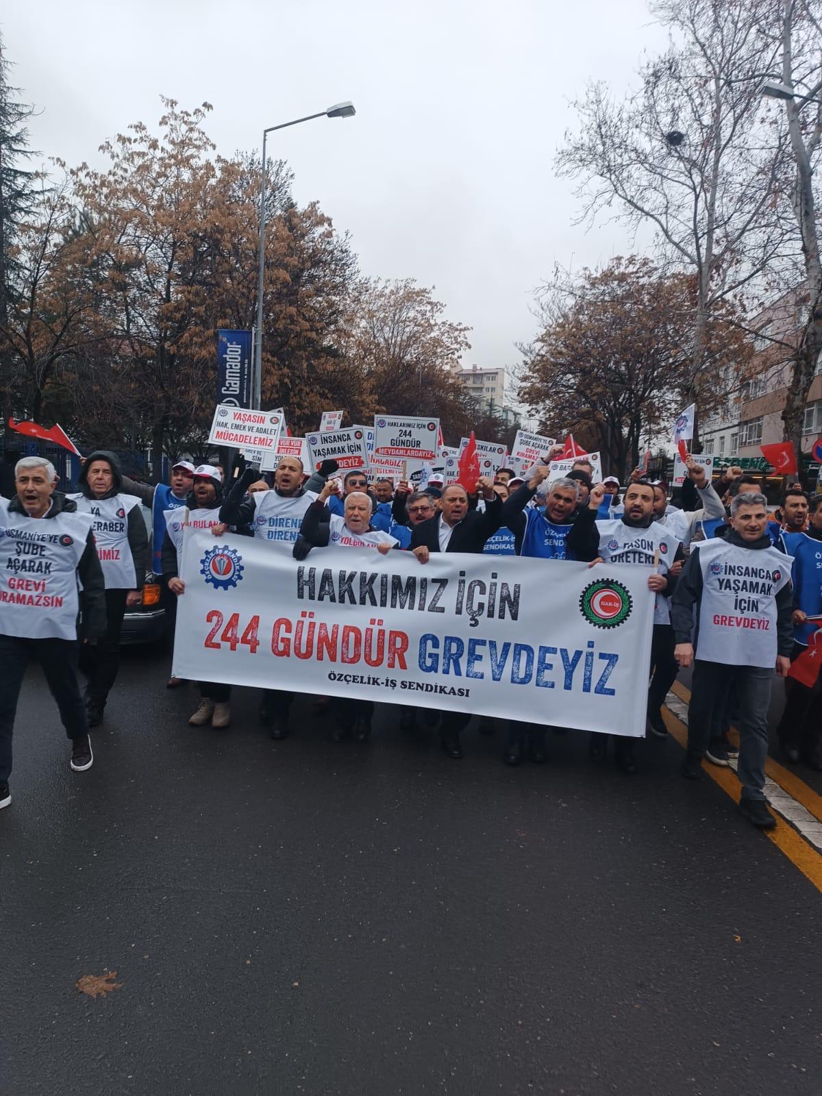 Hatay Dörtyol’daki Yolbulan Metal’de HAK-İŞ Konfederasyonu’na bağlı Özçelik-İş Sendikası öncülüğünde 244 gün önce greve çıkan işçiler Ankara’ya gelerek, Çalışma ve Sosyal Güvenlik Bakanlığı’na yürüyüp Bakanlık önünden Cumhurbaşkanına, Çalışma Bakanına ve işveren tarafına talep ve beklentilerinin karşılanması yönünde çağrı yaptı.