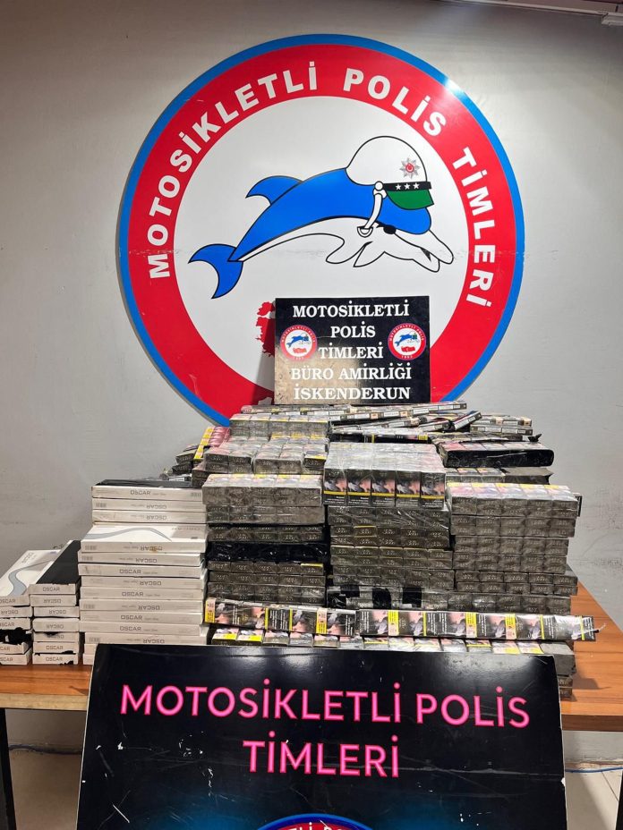 Hatay Emniyet Müdürlüğü ekiplerinin kaçakçılıkla mücadele kapsamında yürüttüğü çalışmalar doğrultusunda, İskenderun motosikletli polis timlerince yapılan çalışmada; gümrük kaçağı olduğu belirlenen 4 bin 300 paket sigaraya el konuldu.