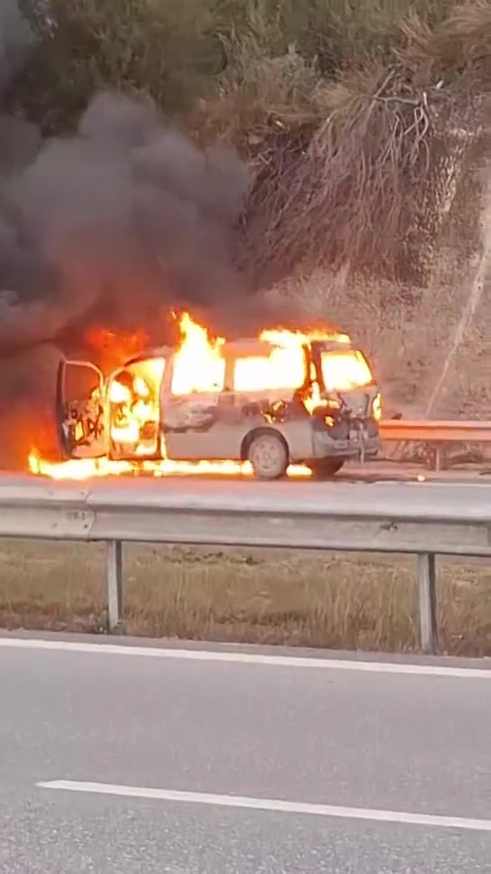İskenderun ilçesinde seyir halindeyken yanmaya başlayan hafif ticari yanarak kullanılmaz hale geldi.