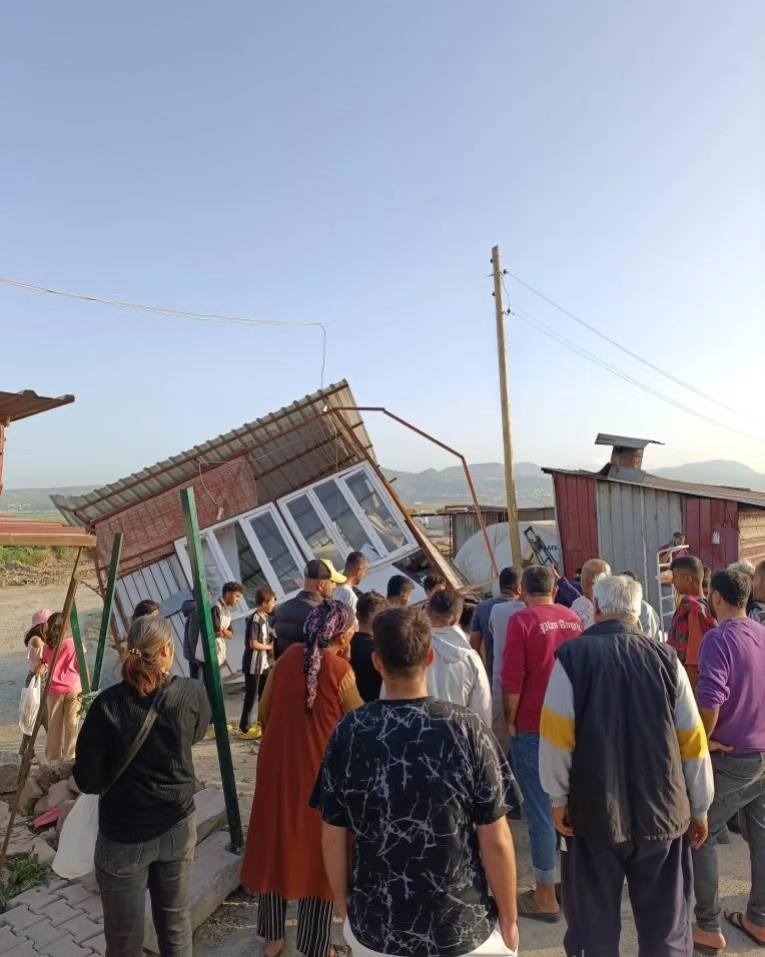 Antakya ilçesine bağlı Alaattin kırsalındaki bir konteyner kentinde iş yapan bir hafriyat kamyonu, seyir halindeyken bir bakkal olarak kullanılan konteynere çarptı.