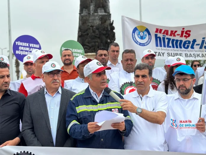 HAK- İŞ konfederasyonuna bağlı sendikaların üyelerinin katılımıyla 5 Temmuz anıt alanında basın açıklaması yapıldı.