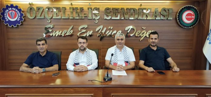 HAK İŞ Konfederasyonu Hatay İl Başkanı Mehmet Güngör Bir basın açıklaması yaparak konfederasyonun Filistin ile dayanışma deklarasyonunu kamu oyu ile paylaştı.