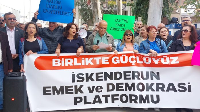 İskenderun Emek ve Demokrasi Platformu Güvercinli parkta kitlesel basın açıklaması yaparak İBB Başkanı Ekrem İmamoğlu’nun tutuklanması ve sonrasında yaşanan olaylarla ilgili görüşlerini kamuoyu ile paylaştı.