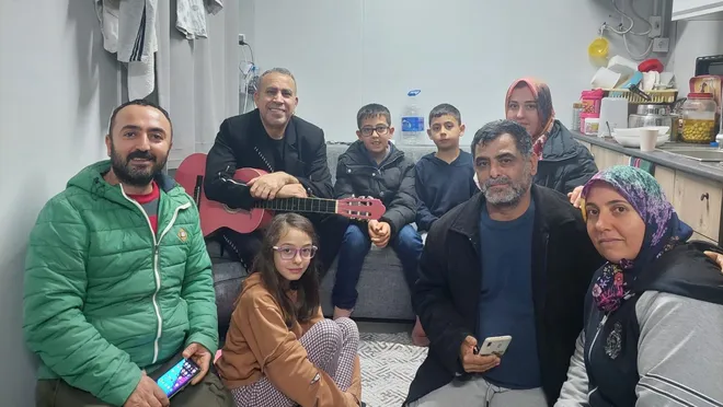 Depremzedelerle birlikte şarkılar söyleyen Halik Levent, bazı aileleri de konteynerlerinde ziyaret etti.