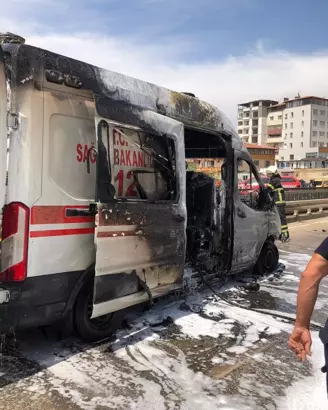 Samandağ ilçesinde hasta götürürken yangın çıkan ambulans kullanılamaz hale geldi. Hasta, çağırılan başka bir ambulansla hastaneye götürüldü.