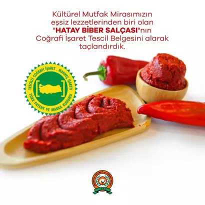 Kültürel mutfak mirasımızın eşsiz lezzetlerinden biri olan Hatay biber salçasına Coğrafi İşaret Tescil Belgesi alarak bu değerimizi taçlandırdık. Yöresel ürünlerimizi markalaştırmaya ve bu toprakların zenginliklerini dünyaya tanıtmaya devam edeceğiz” ifadelerine yer verildi. (DHA)