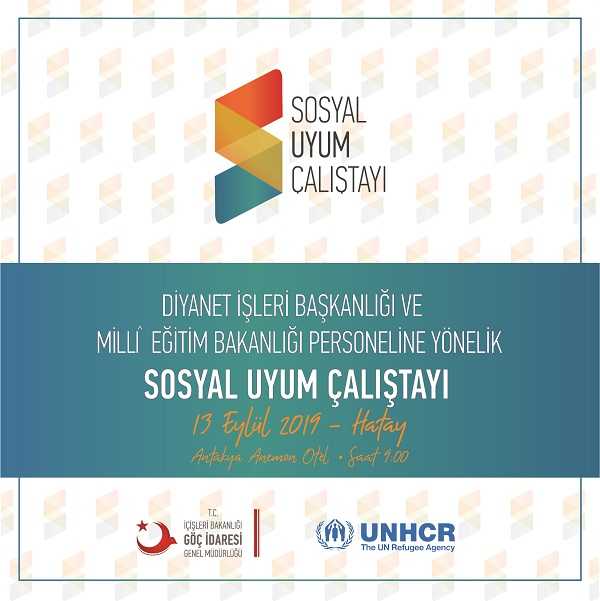 Göç İdaresi Genel Müdürlüğü Uyum ve İletişim Dairesi Başkanlığı ve Birleşmiş Milletler Mülteciler Yüksek Komiserliği (BMMYK) iş birliği ile düzenlenen Diyanet İşleri Başkanlığı ve Millî Eğitim Bakanlığı personeline yönelik “Sosyal Uyum Çalıştayı-6” 12 Eylül 2019 Cumagünü Hatay’dagerçekleştirilecek.