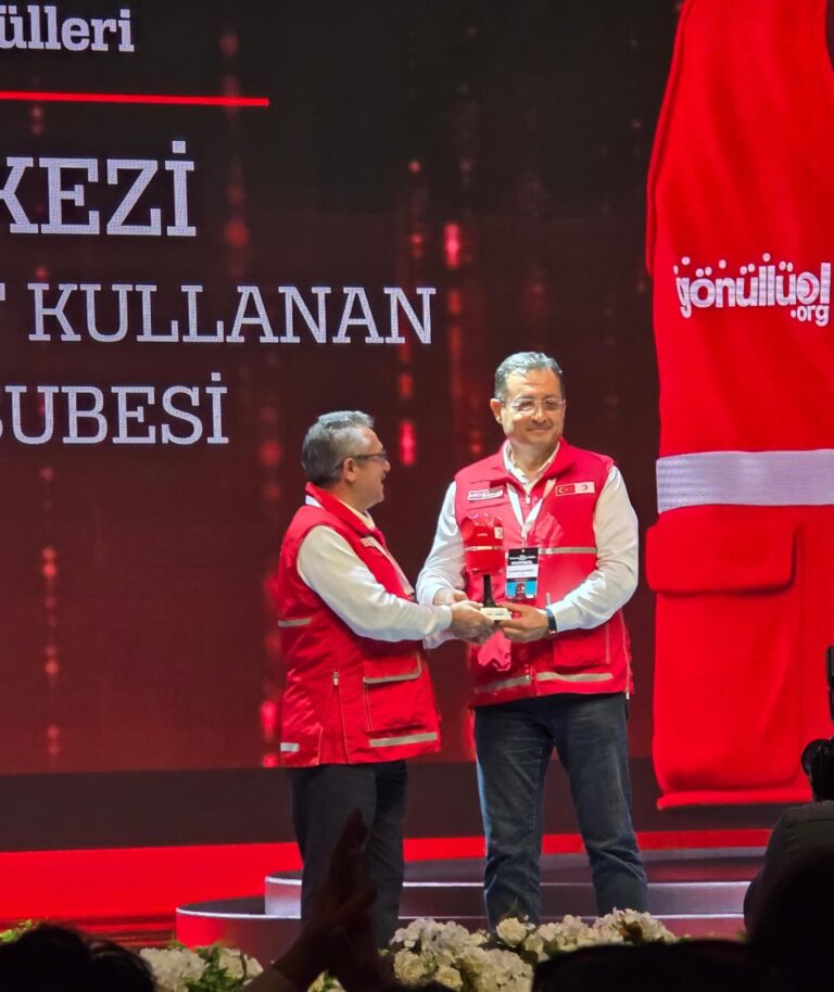 İstanbul Haliç Kongre Merkezi’nde 4 bin gönüllünün katılımıyla düzenlenen törende, Kızılay Hatay Şubesi Başkanı Hüseyin Kimyonoğlu, ödülünü Türk Kızılay Genel Sekreter Yardımcısı Şükrü Can’ın elinden aldı.