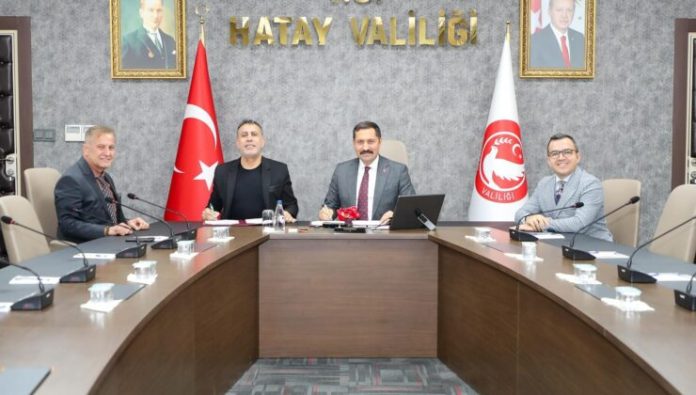 Protokol, Hatay Valisi Mustafa Masatlı ve AHBAP Derneği Yönetim Kurulu Başkanı Sanatçı Haluk Levent’in katılımıyla gerçekleştirildi.