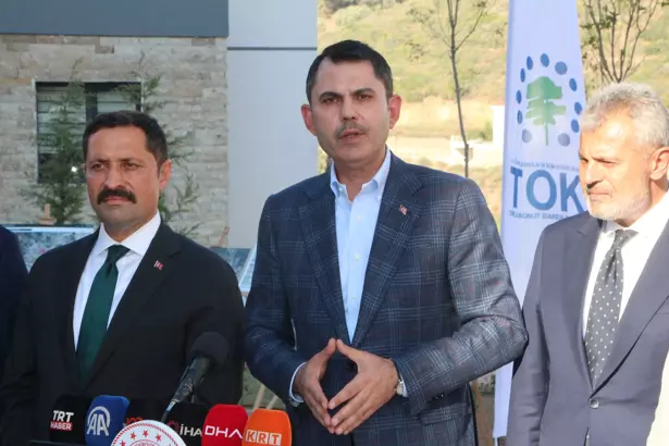Hatay Valiliği’nde düzenlenen İl Değerlendirme Toplantısı’nın ardından merkez Antakya ilçesi Gülderen Mahallesi’nde inşa edilen deprem konutlarını inceleyen Çevre, Şehircilik ve İklim Değişikliği Bakanı Murat Kurum, basın açıklaması yaptı. Tamamlanan konutların etaplar halinde vatandaşlara teslim edildiğini belirten Kurum, “Şu an 11 ilde 174 ayrı alanda ve 4 bin 333 köyümüzde, bu şantiyelerde çalışan 153 bin işçi, emekçi kardeşimizle birlikte bu mücadeleyi canla başla veriyoruz. Şu anda tüm bölgede ihalesi tamamlanan konut sayımız 322 bine ulaşmıştır. Söz verdiğimiz gibi eylül ayı içinde 100 bininci konutumuzun anahtarlarını vatandaşlarımıza teslim ettik ve bu mutluluğu hep birlikte yaşadık. Hamdolsun konut teslim sayımız 101 bin 254’e ulaşmıştır. İnşallah daha önce de ifade ettiğimiz gibi yıl sonuna kadar 200 bin, 2025 sonuna geldiğimizde de 452 bin konut ve iş yerimizi 11 ilimizde vatandaşlarımıza teslim edeceğiz. 2025 yılı bitmeden, yeni, güvenli evine girmeyen hiçbir vatandaşımız, kardeşimiz inşallah kalmayacak” dedi.