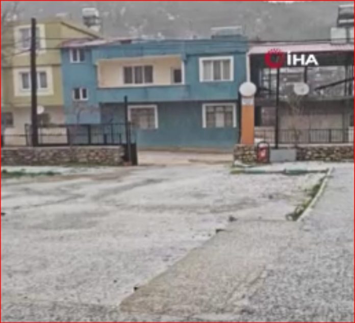 Meteorolojinin fırtına ve yağışlı hava uyarısında bulunduğu Hatay’da yağışlı hava geçtiğimiz gün gece saatlerinde başladı ve gün boyunca etkisini sürdürdü. Antakya ilçesinde zaman zaman dolu etkisini hissettirse de kısa sürede eridi. Yayladağı ilçesi Bezge Mahallesi’nde etkili olan dolu yağışı doğayı beyaza bürüdü. Dolu yağışının beyaza bürüdüğü çevre vatandaşlar tarafından görüntülendi.