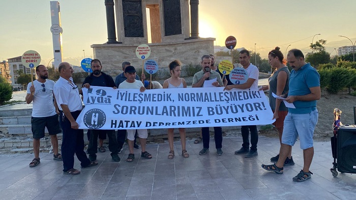 Memleketimiz topyekün bir talan altında.Bizler temel ihtiyaçlarımız için dahi devamlı bir mücadele içindeyiz.Nitelikli geçici barınma koşullarından bu denli uzakken rezerv alan tartışmalarına,daha nice yasayla belirsizliğe sürükleniyoruz. Yetkilileri uyarıyoruz!Bizleri türlü tartışmalarla oyalamaya çalıştığınızın farkındayız.Bu kentte, bu memlekette yaşayan biziz, gelecekte de biz yaşayacağız. Bizi yok sayarak inşa etmeye azmettiğiniz kent, bizim değil, sizin ve ihaleleri pasladıklarınızın hayalindeki kenttir. Buradayız, muhatabınız biziz, Hatay’ın gerçek sahibi Hataylılardır. Ya bizi muhatap alırsınız ya da bize rağmen yapamazsınız! Buradayız, gitmiyoruz!
