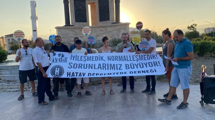 Hatay Depremzede Derneği 19.ayda Hatay’daki son durumu aktardığı bir basın açıklaması gerçekleştirdi. Basın açıklamasını Hatay Depremzede Derneği Yönetim Kurulu üyesi Servet Alkan okudu. Açıklama Uğur Mumcu Meydanı’nda gerçekleşti.