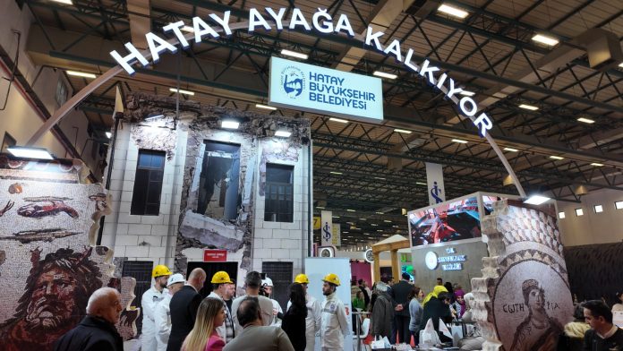 Fuarda ziyaretçilere, Hatay’ın deprem süreci ve sonrasındaki gelişmeleri hakkında bilgiler verilirken özellikle turizm alanında planlanan projeler ve şehrin yeniden ayağa kalkma sürecinde yapılan çalışmalar aktarıldı.