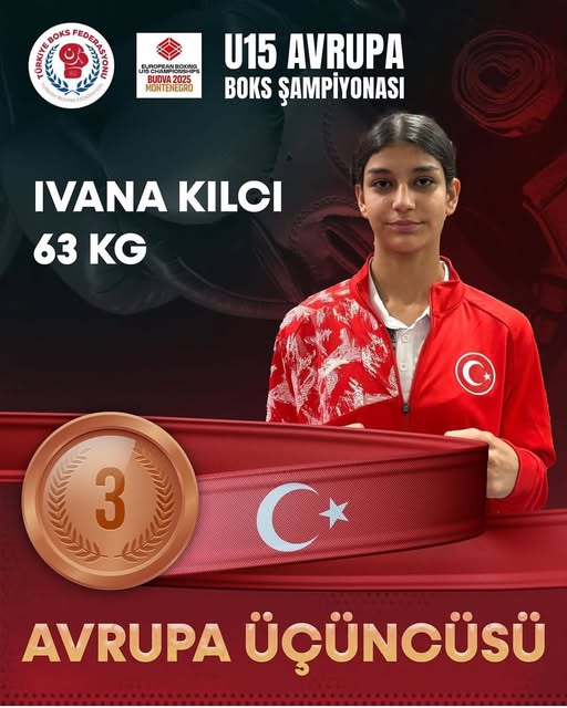 Karadağ’ın Budva şehrinde düzenlenen U15 Avrupa Boks Şampiyonası’nda 63 kilogramda ringe çıkan milli sporcumuz İvana Kılcı, turnuvayı üçüncü sırada tamamlayarak bronz madalyanın sahibi olurken, Türk bayrağını Avrupa’da gururla temsil etti.