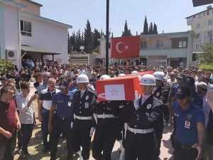 Şehit Ali Uçar’ın Türk Bayrağına sarılı tabutu Antakya Mezarlık Kompleksi’ne tören mangasının omuzlarında getirildi. Burada düzenlenen cenaze törenine İçişleri Bakan Yardımcısı Muhterem İnci ve Emniyet Genel Müdürü Mehmet Aktaş’ın da katıldı. Şehidin babası Abdülsemet Uçar güçlükle ayakta dururken, kardeşi ise abisinin kıyafetleriyle cenazeye katıldı.
