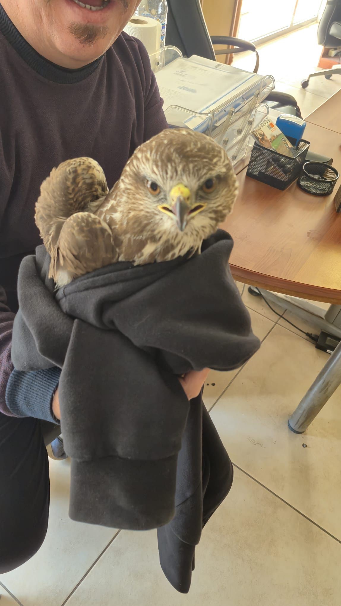Adana – Hatay otobanının Payas ilçesi mevkiinde Oğuzhan Alkan isimli vatandaş, yaralı olarak yerde bekleyen şahini fark etti. Yaralı şahini ölüme terk etmeyen Alkan, yakalayarak aracına aldı. Alkan, yaralı şahini İlçe Tarım ve Orman Müdürlüğü ekiplerine yaralı kuşu teslim etti. Şahin, gerekli tedavi ve bakımının yapılması amacıyla Mustafa Kemal Üniversitesi Yaban Hayvanı Kurtarma ve Rehabilitasyon Merkezi’ne götürüldü.