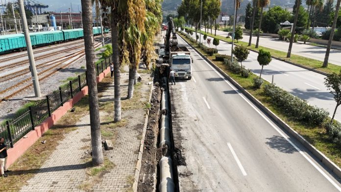 Altyapı problemlerini çözüme kavuşturmak için projeler üreterek uygulayan HATSU Genel Müdürlüğü, İskenderun ilçesi Çay Mahallesi Prof. Muammer Aksoy Caddesi üzerinde yağmur suyu hattı yapımına devam ediyor.