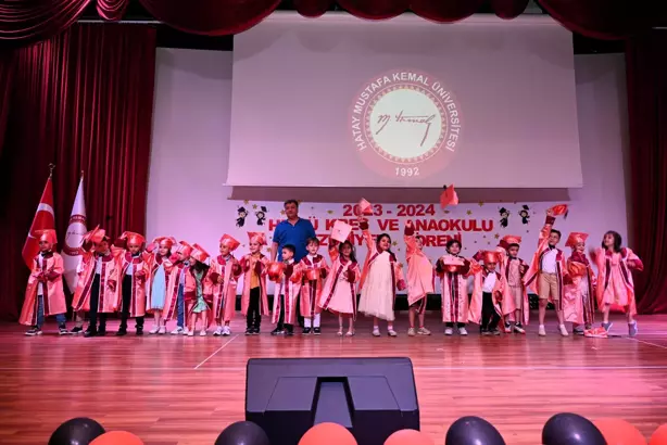 Mustafa Kemal Üniversitesi bünyesinde kurulan kreş ve anaokulunda 2023-2024 yılını başarıyla tamamlayan minik öğrenciler, hayatlarının ilk mezuniyetin yaşadı.